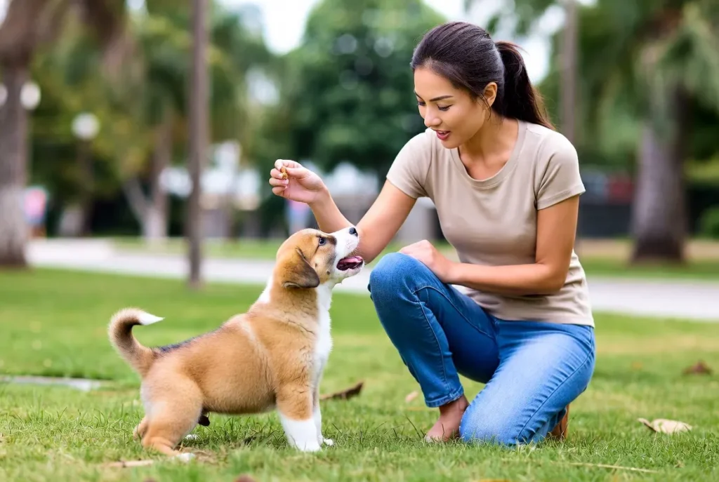 Positive reinforcement is essential when using home remedies to stop a puppy from eating poop.